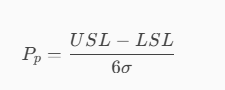 En control de calidad, la desviación estándar permite evaluar la capacidad o el rendimiento de un proceso para mantenerse dentro de los límites de especificación. Esto se traduce en índices como por ejemplo el Pp, que compara la tolerancia total con la variabilidad del proceso, considerando la variación como 6 veces la desviación estándar: